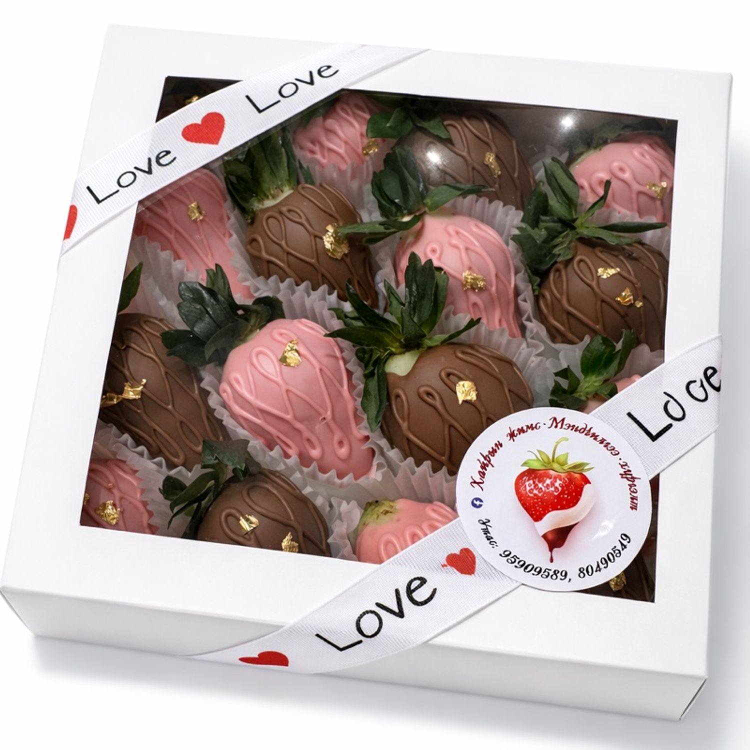 Шоколадтай гүзээлзгэнэтэй хайрцаг